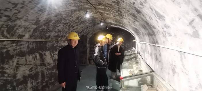 华哥指着人防工程展览的一幅图片说:这张打风钻的照片是专门为展览拍摄的,当时,工人们在坑道内打风钻实际上是全裸的。因为井下的温泉在48~50度,烫得受不了,不仅全裸,后面还专门有人拿管子给风钻工和出渣工身上不断地喷凉水,下雪天都要喷,打钻必须一小时一换班。当时,矿里有一个23岁的女技术员,按规定她每天都要下井检查质量与安全,而井下的工人们都光着身子。正好巷道内有一根风管、一根水管直通洞外,她进去前就拿石头在风管上敲三下,里面的人听到以后赶快穿好衣服,也用石头在风管上敲三下,这就告诉她可以进来了。等检查完,他们又脱掉衣服继续干。
