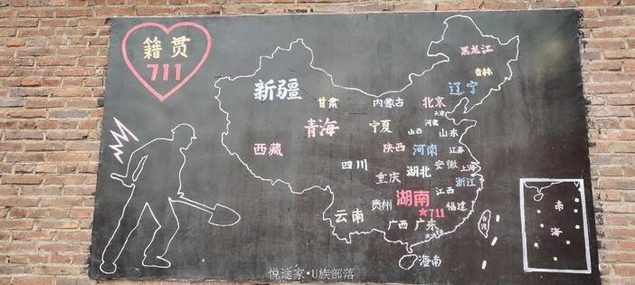 在时光小镇改造过的一栋老房子,有一面由204个手印组成的“籍贯七一一”的手印墙,其中有功勋卓著的“矿一代”,勇于担当的“矿二代”和传承开拓的“矿三代”及家属。他们用手印代表着自上世纪五十年代开始,从各个省区汇聚而来的新老“七一一人”,表达对“七一一矿”这个共同的家园和这个事业的深厚感情与热爱,以此庚续“中国核工业第一功勋铀矿”的家国情怀与梦想。