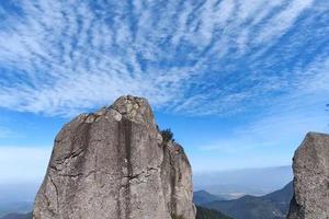 站在七姊石山顶俯视郴州,北瞻衡岳,南眺五岭。七姊石三面皆悬崖,壁立千刃,怪石嶙峋,劲松苍茫,白云轻漫,似有华山之险峻,黄山之秀丽;七姊石松杉竹木满山遍野,郁郁葱葱;野生兰花、杜娟花开时,清香宜人,令人心旷神怡,流连忘返。